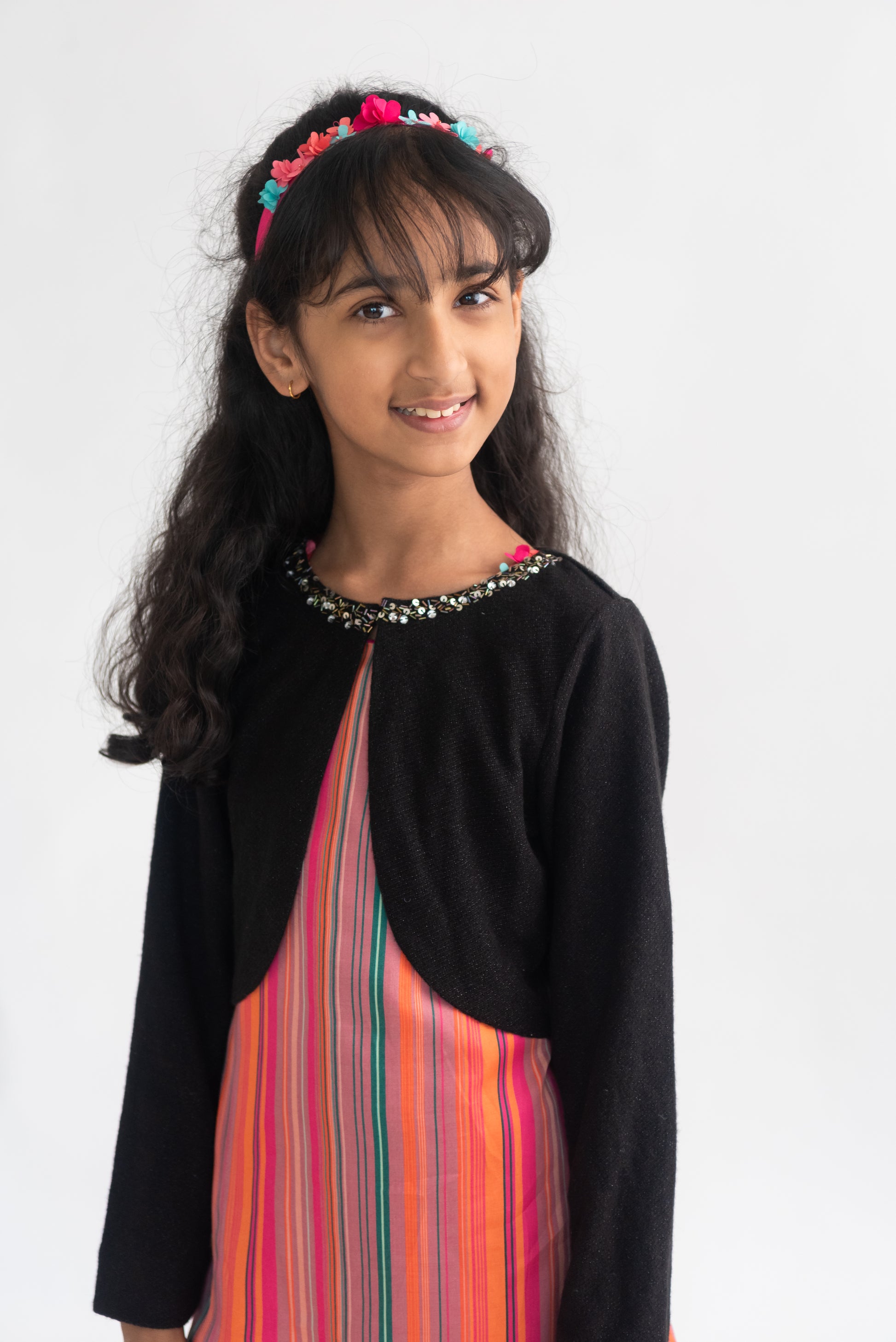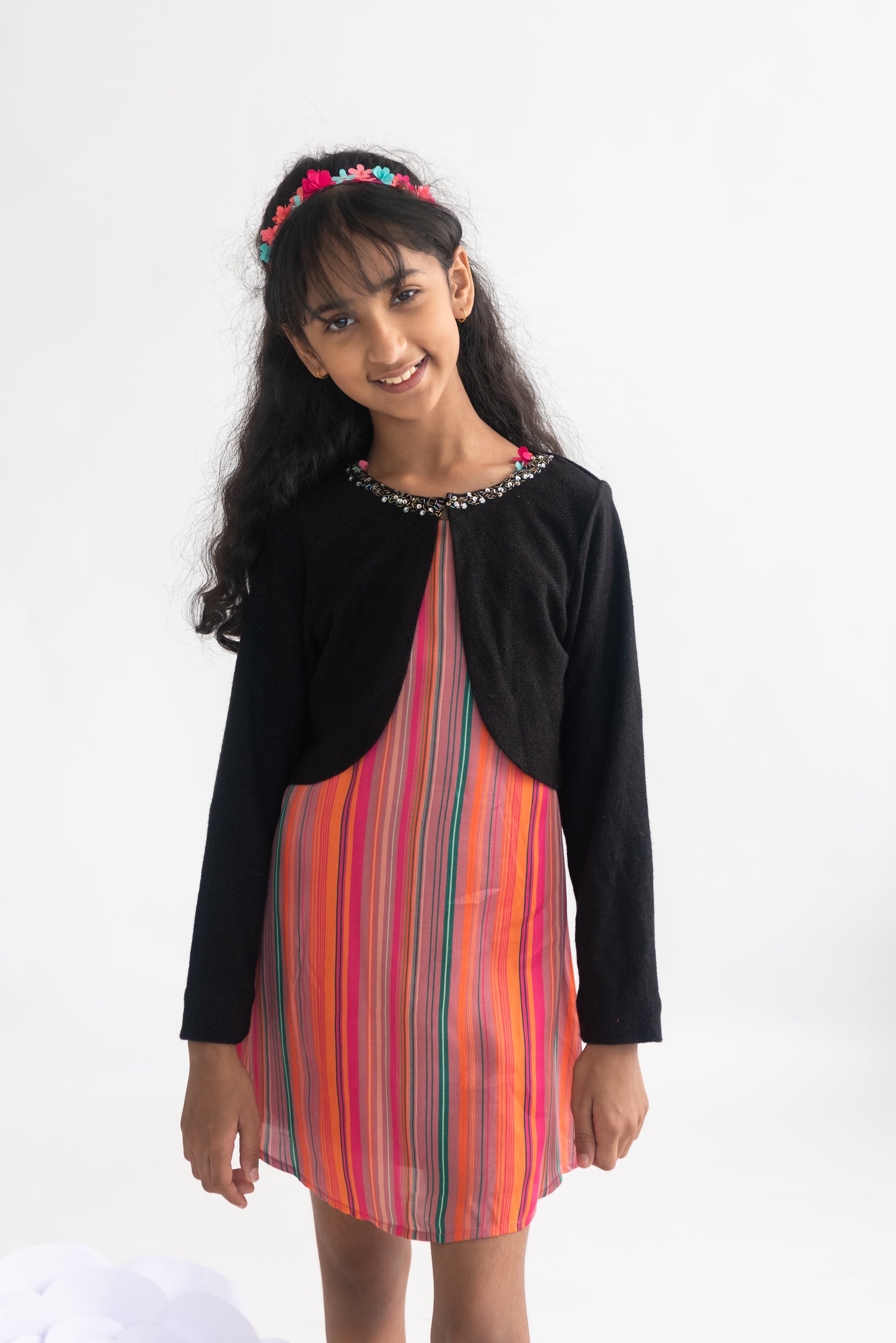 For a party or a get together this shrug pairs up beautifully with all outfits. Its subtle shimmer and hand embroidery around neck adds to its speciality, making it stand out.
