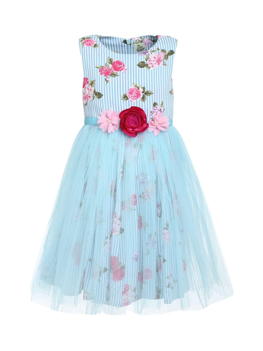 A dreamy cotton dress with tulle adds an alluring look to your little ballerina. Hand crafted flowers celebrate a little girl who likes to dance on tipsy toes.