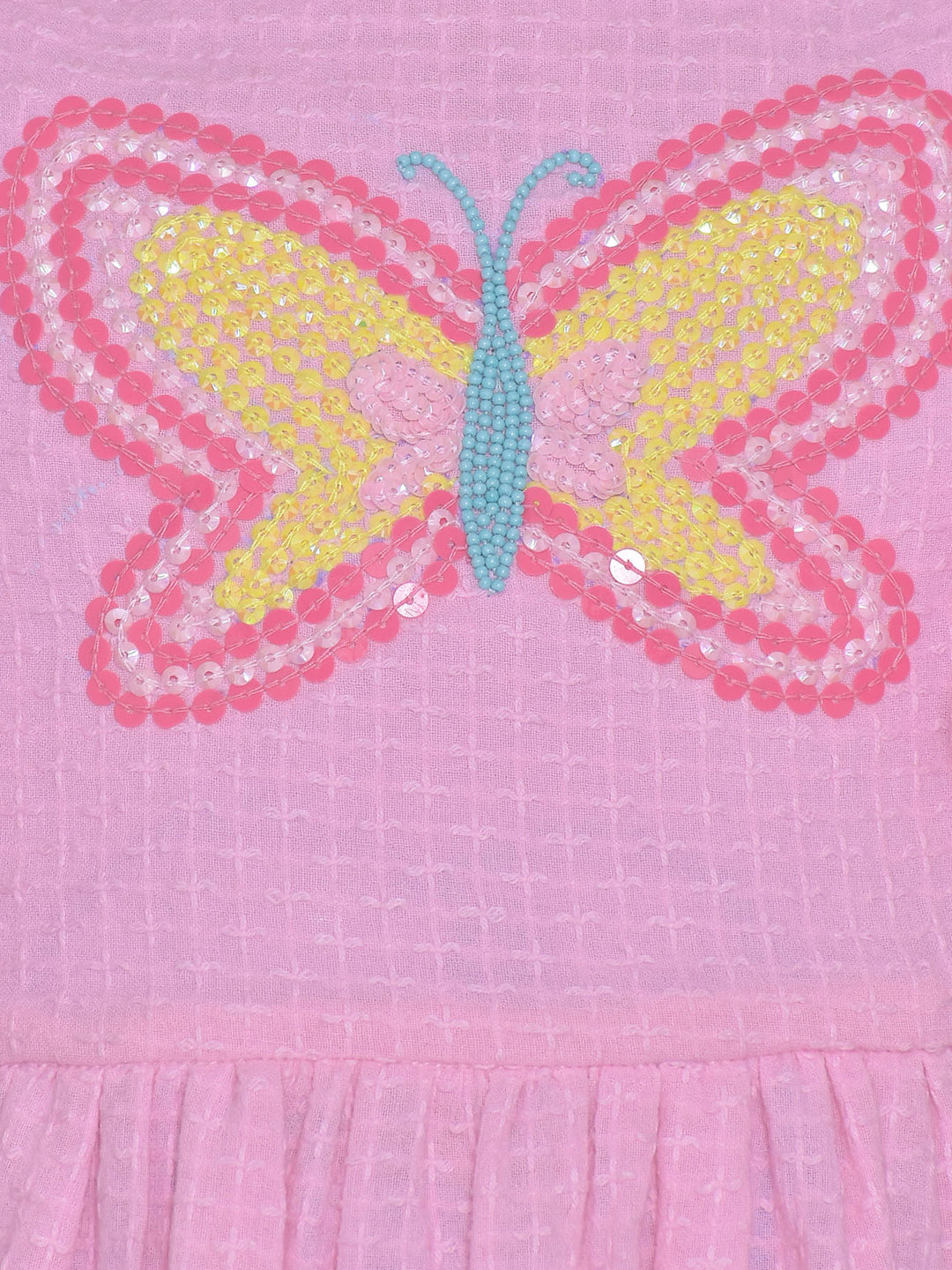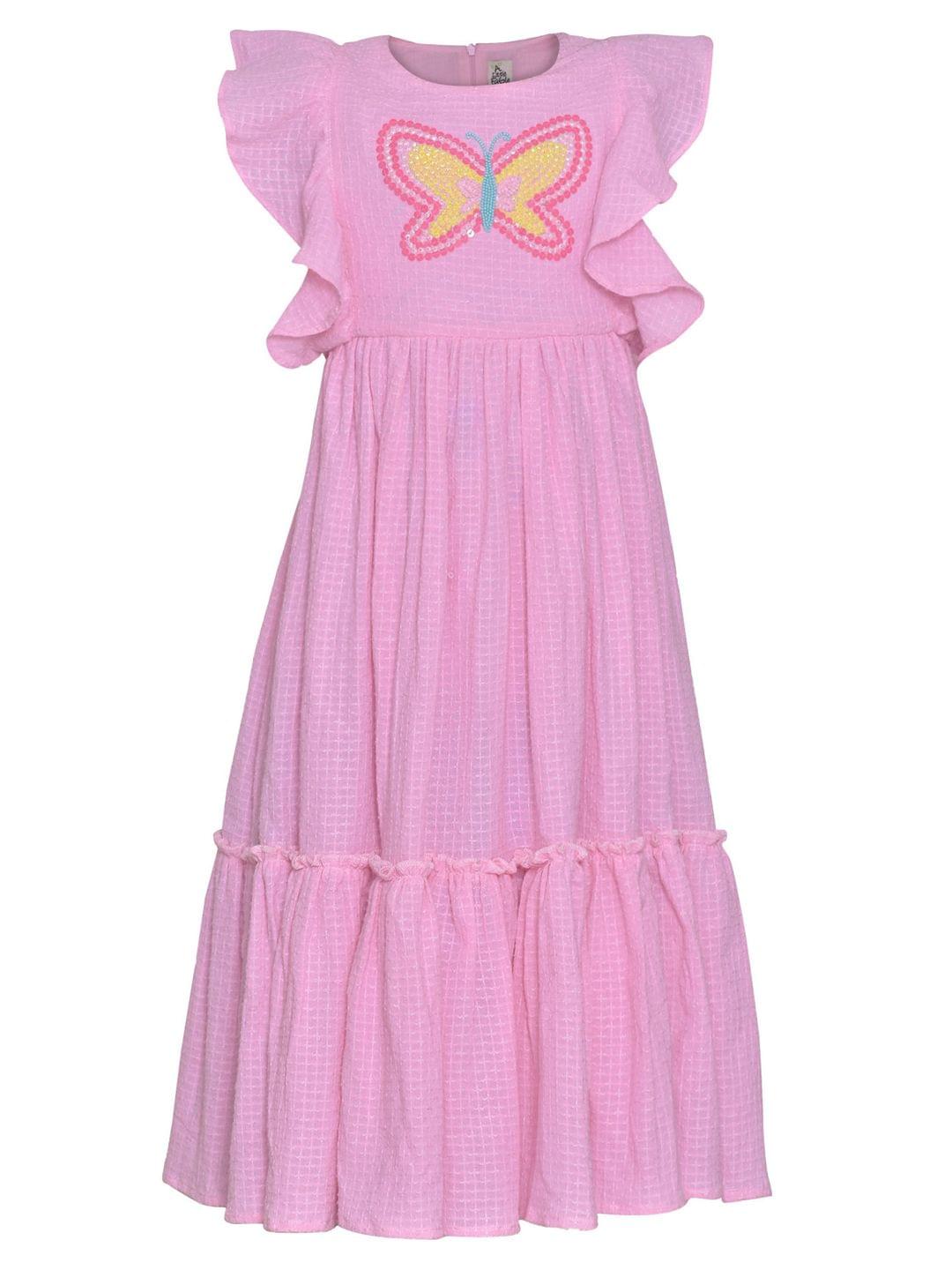 What more can a girl ask for, twirling maxi dress that too with butterfly embroidery! With its pretty pink colour and shimmering sequins, this piece is perfect for every occasion. Just add roman sandals! You'll love it!