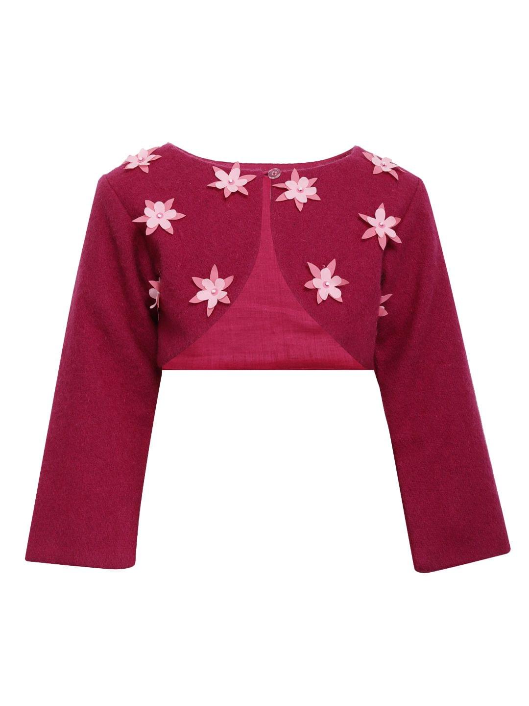 A Little Fable presents a comfortable and warm wool shrug, tailor made for your little one. A shrug so gorgeous and delicately designed that it will certainly make your little one stand out at the party. A perfect winterwear, embellished with scattered flowers and fastens with a single button. Layer it over her favourite dress.