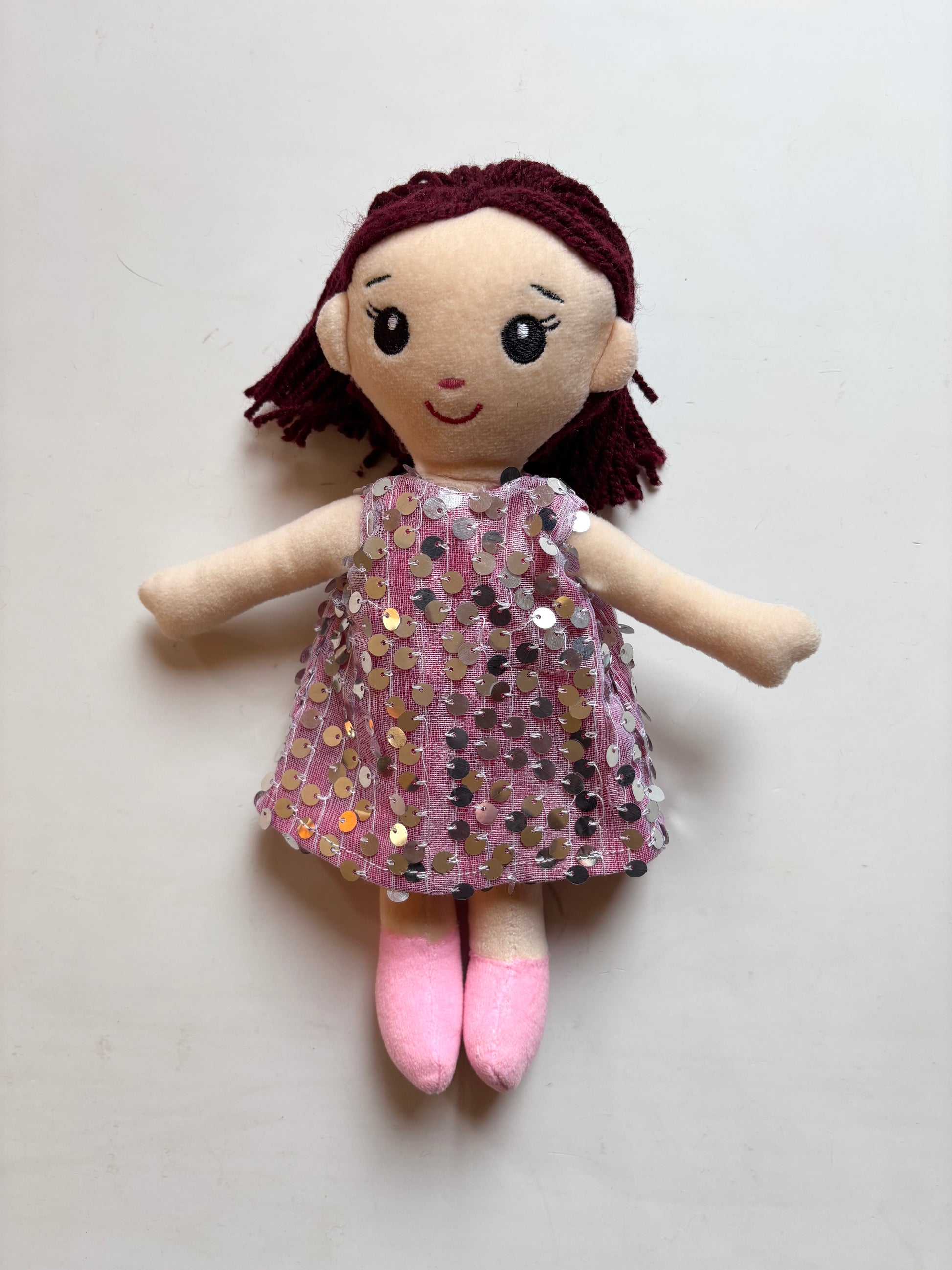 Material: Handmade Polyester fabric doll with net dress and sequins