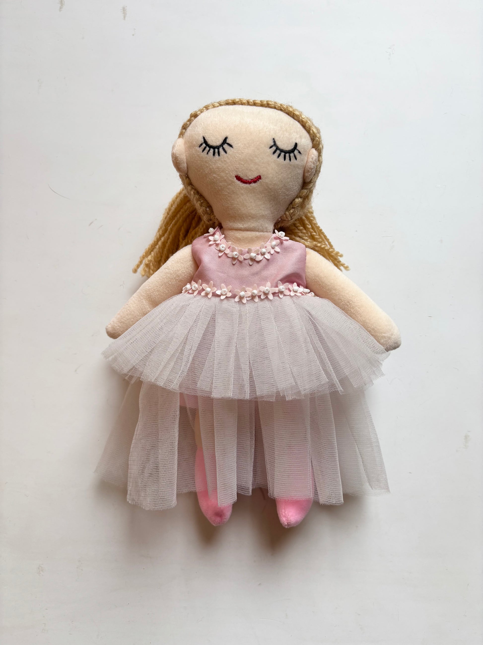 Material: Dress - Tulle, Poly Blend, Doll - Handmade Polyester fabric doll with tutu dress and handmade flowers