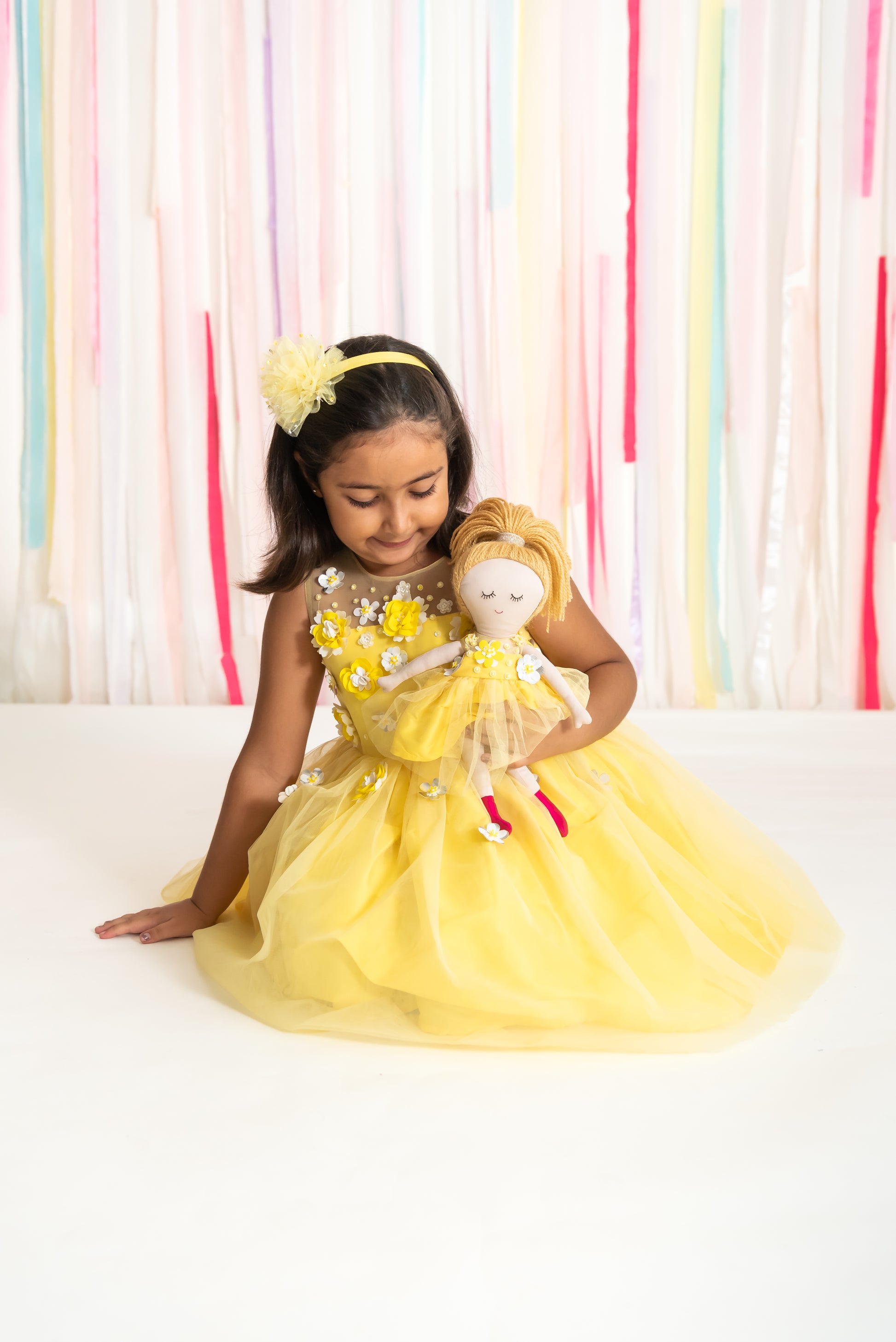 Marigold 3d flower Dress & doll Set