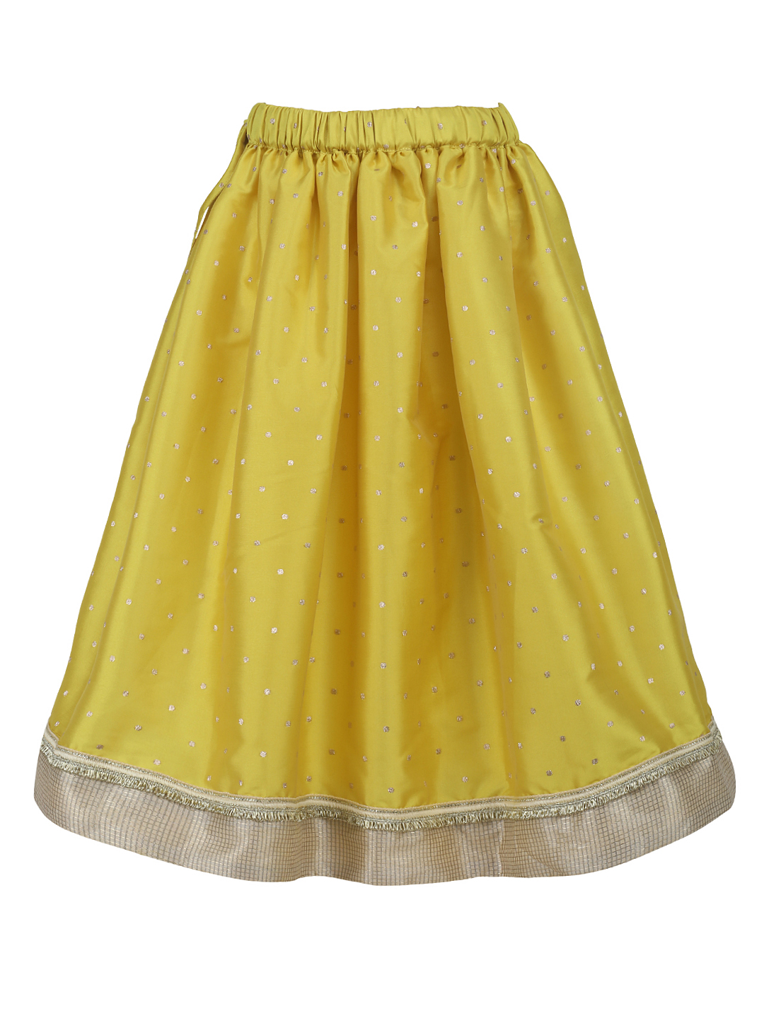 Your little princess with look absolutely gorgeous in this Mehtab lehnga. This lehenga set is comfortable to wear. Comprising of a lurex textured lehenga, brocade choli, and tulle dupatta, this choli has hand embroidered motifs on the yoke and this set is ideal to be worn to weddings and other social gatherings.