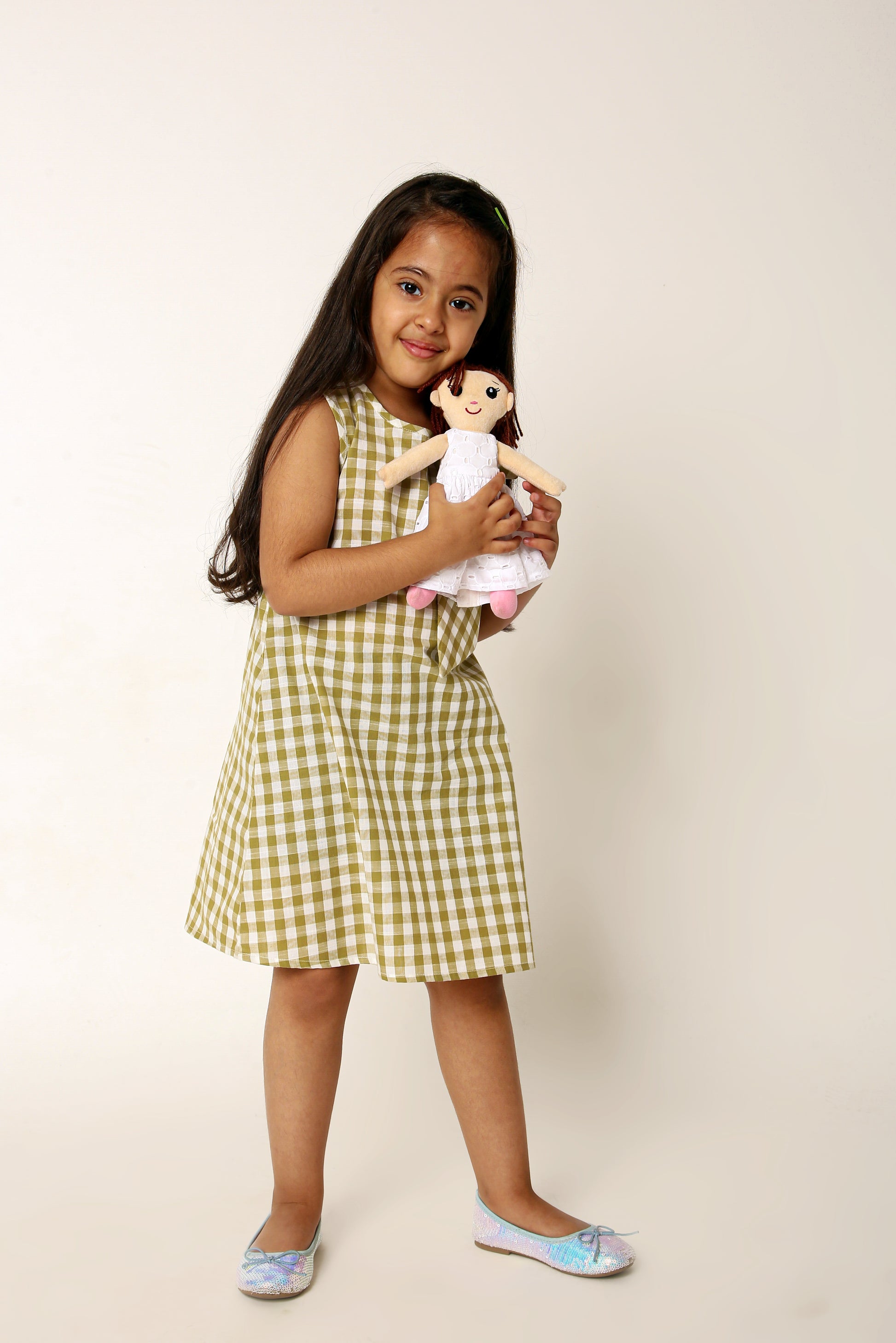 A trendy dress in Gingham check adds an alluring look to spring wardrobe. With a large bow on the shoulder gives it an impeccable look. This dress is made with soft cotton and YKK zip fastening makes it comfortable for the child to wear.