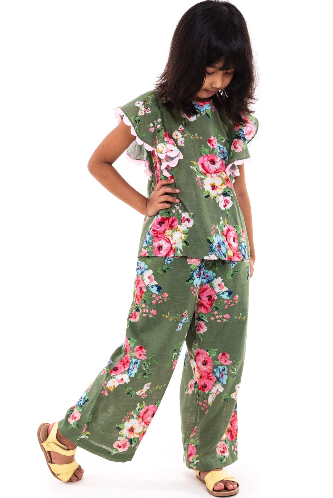 This Mini Edith Set comprises of a top and bottom in printed floral fabric. It features flutter sleeves with scallops. This set is made in 100% cotton and is soft and easy to wear.