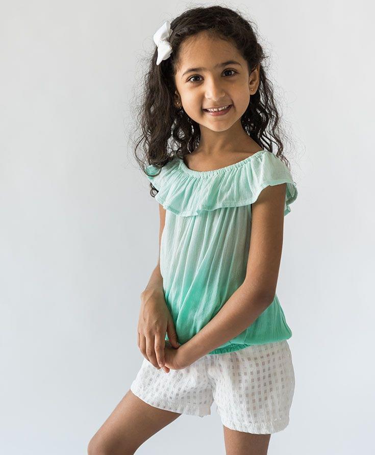 This stylish piece is great for the daytime crafted from lightweight gauze fabric with ombre dyeing and a Bardot-style neckline. It has stretchy trims and a shirred insert for comfortable wear. It is made of soft cotton and is gentle on skin.