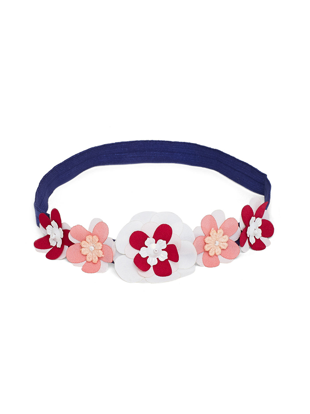 A perfect coordinate for with any navy dress, this headband has hand embroidered flowers with sequins on an elasticated band.
