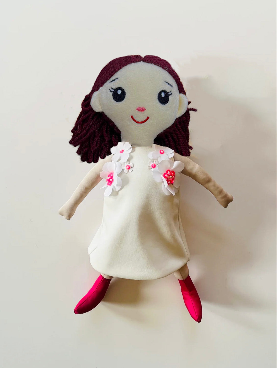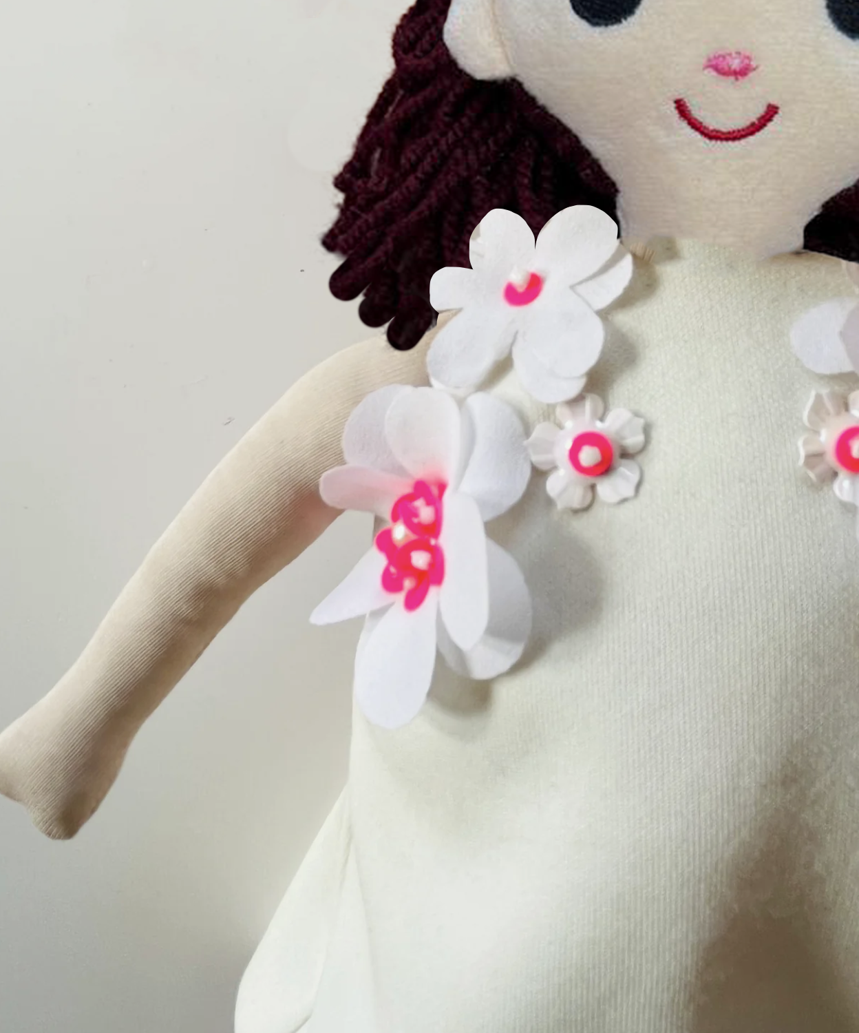 Growing up with dolls is beautiful and exciting. What is better than having a doll perfectly matching with your dress. A handmade doll to perfectly match your Neon pearl dress to dance around with. A perfect gift for little princess