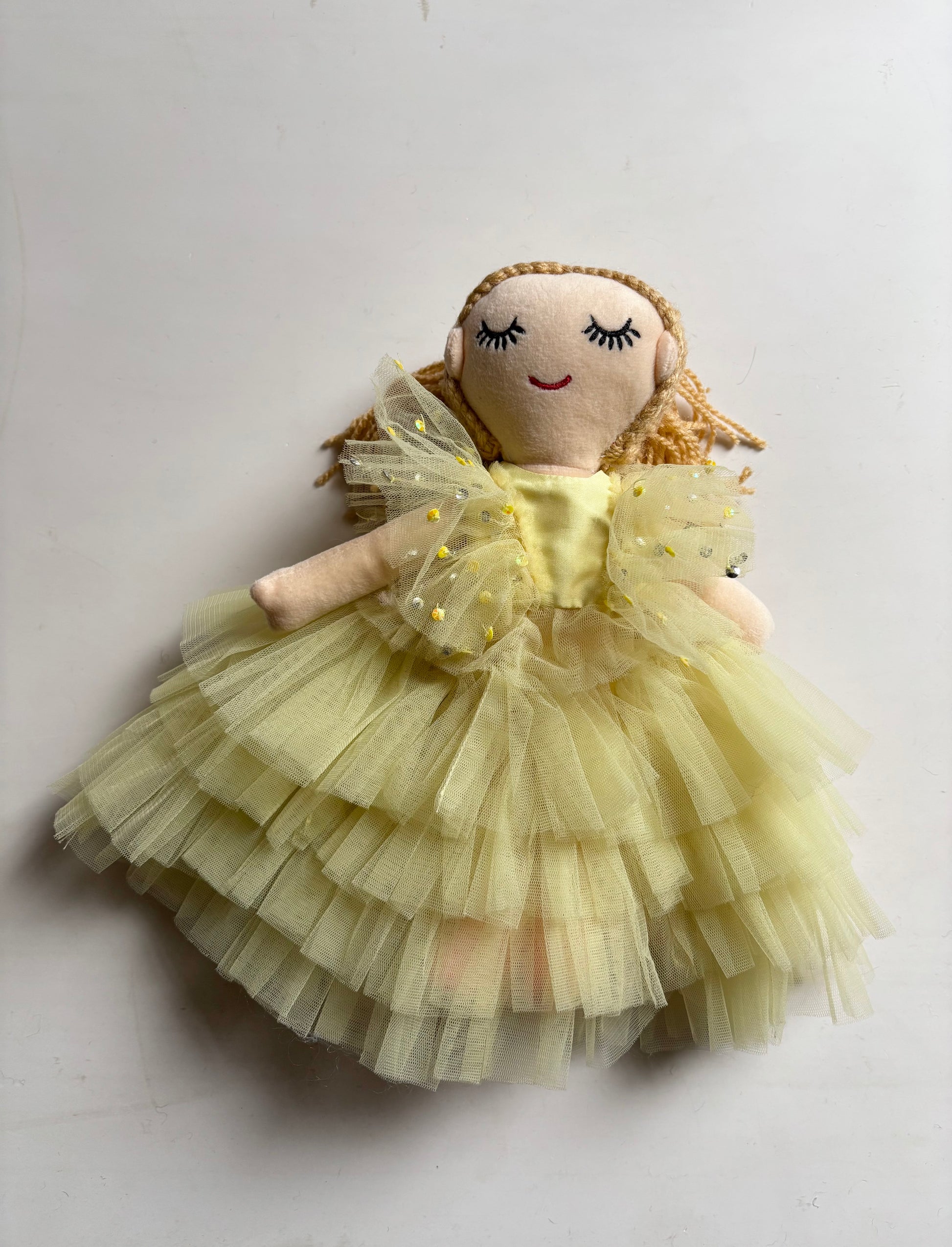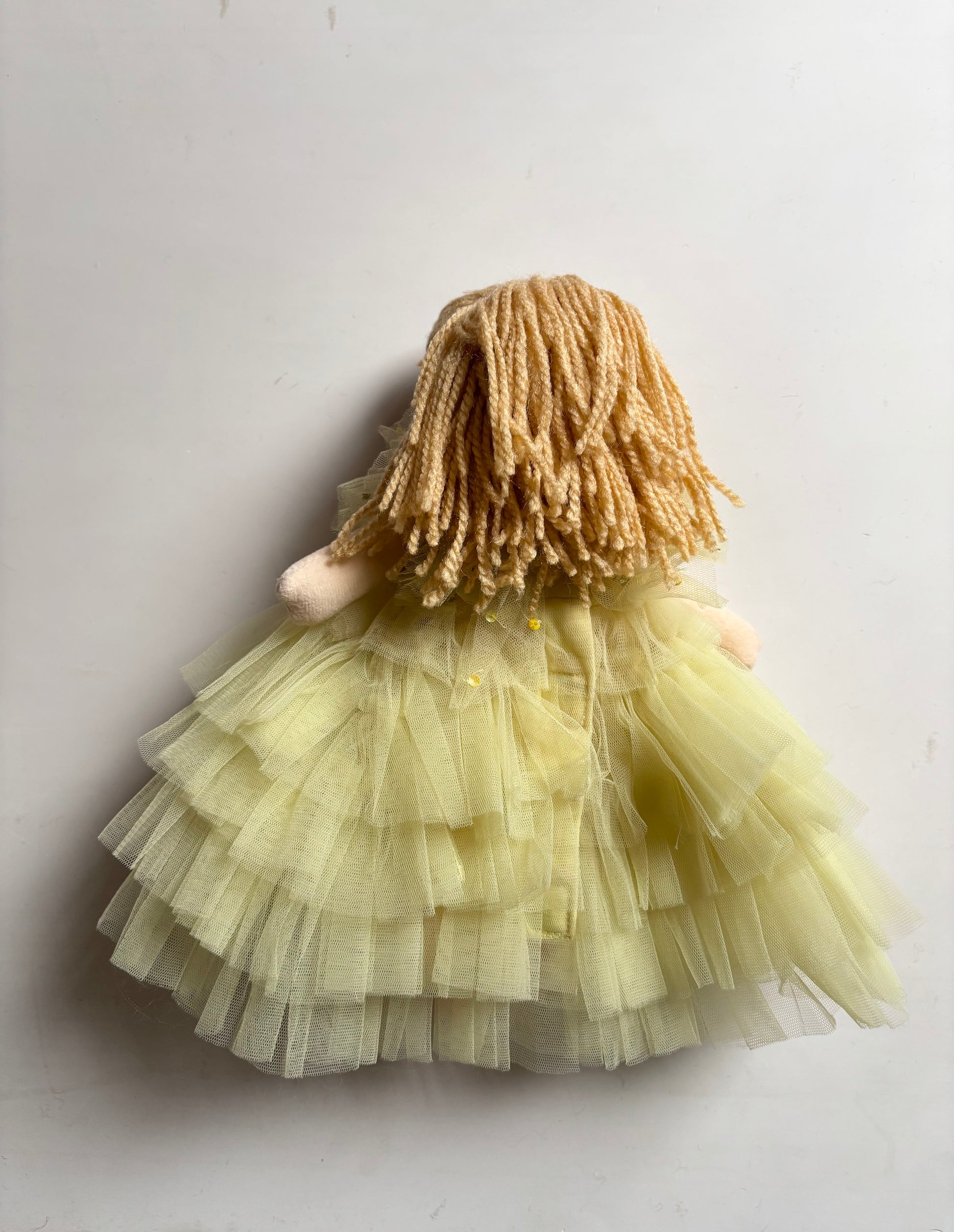 Material: Handmade Polyester fabric doll with tutu dress and handmade flowers