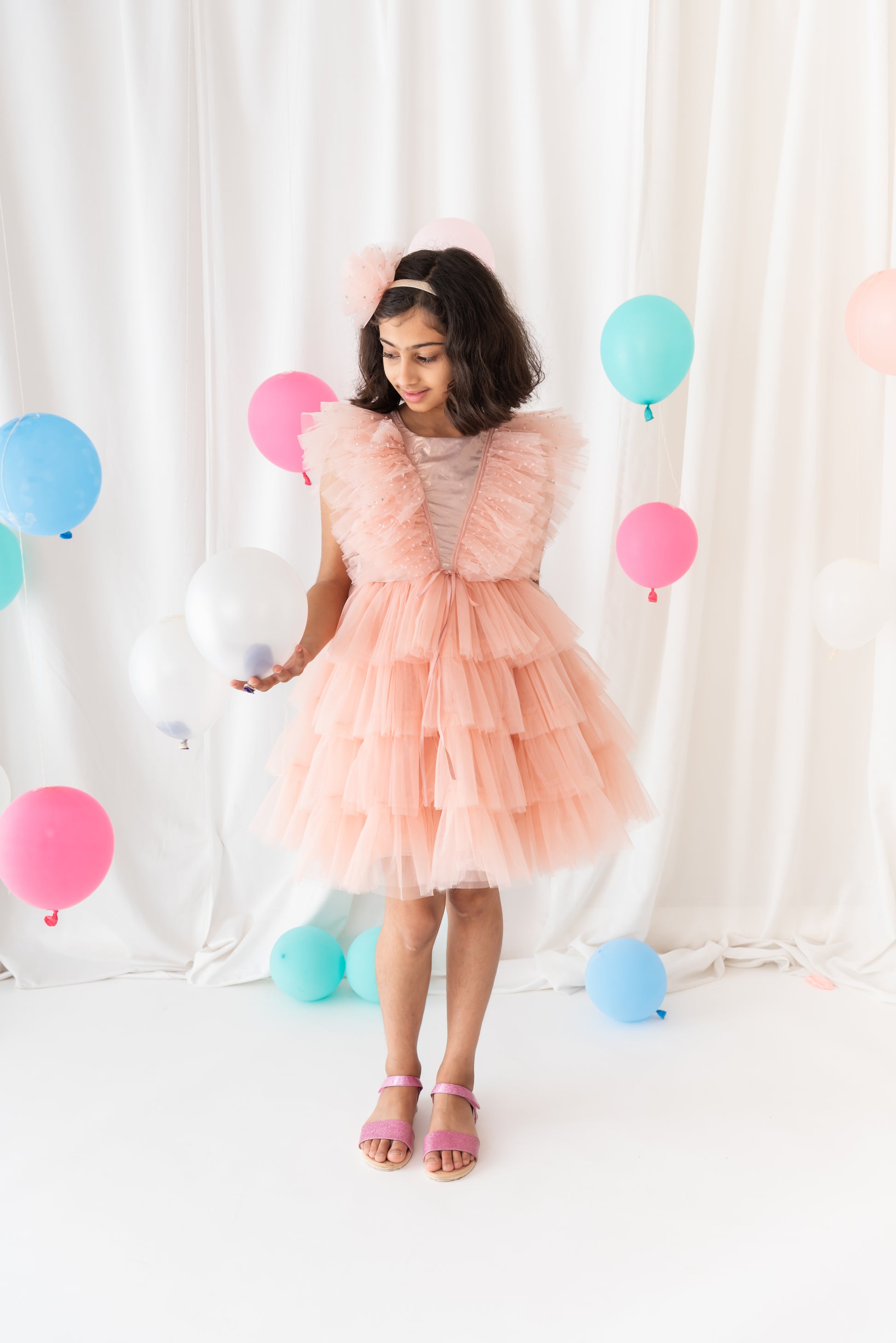 Material: Dress - Polyester lurex lycra with layers of Tulle , Doll - Handmade Polyester fabric doll with tutu dress and handmade flowers