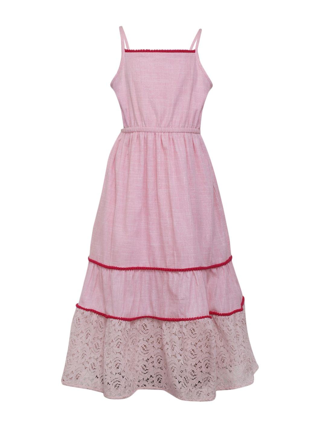 This versatile, easy-to-wear maxi dress for girls can be formal or semi-formal wear it looks as good with flip-flops as it does with party shoes. In soft cotton with lace, it features a fitted bodice with an elasticated waist and a full, tiered skirt with pretty bright pink trims. Lined in 100% cotton.