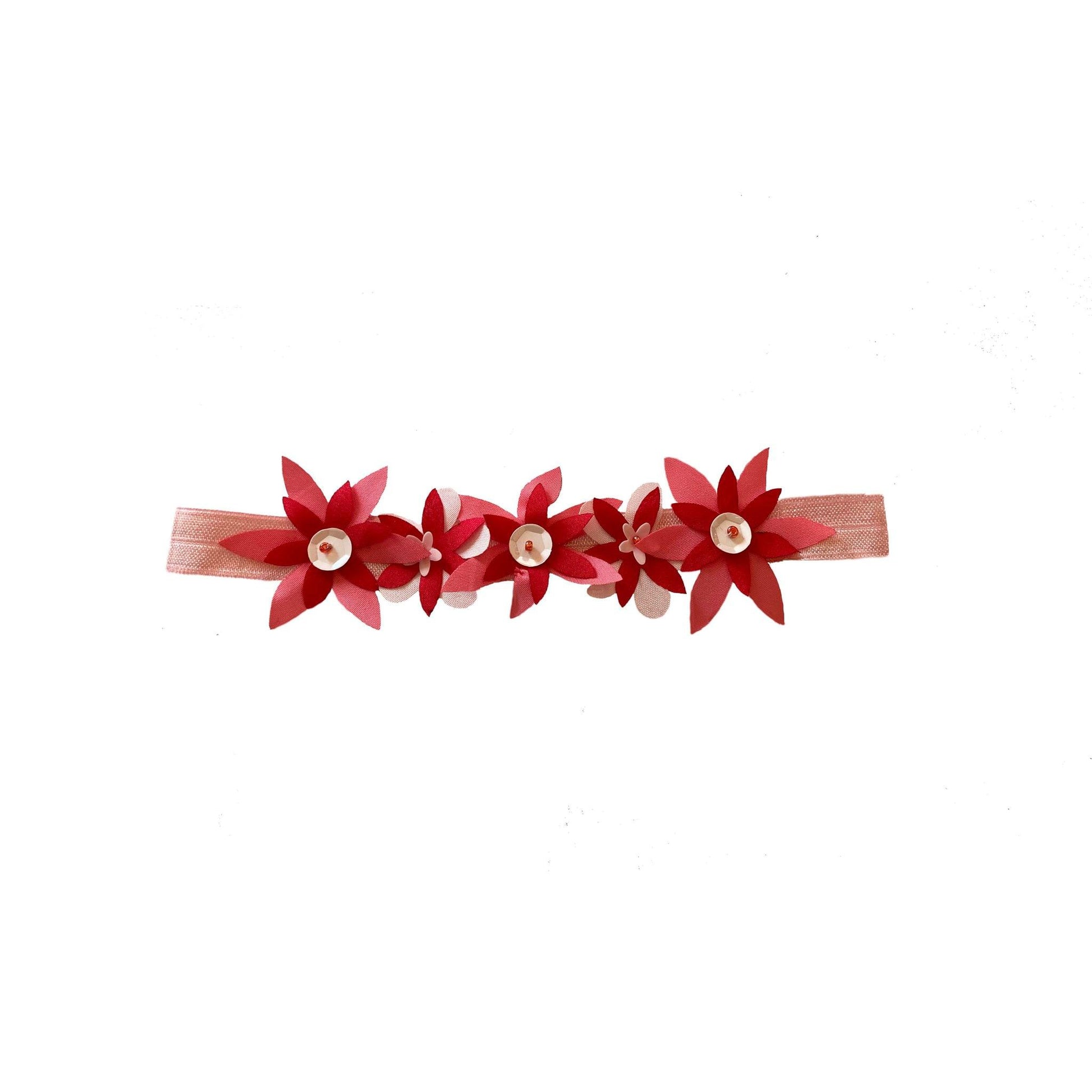 A pretty string of flowers in pink colour on an elasticated headband is our total favourite. Co-ordinated with pink flower dresses, this is perfect for any occasion. It's a great addition to your daughter's accessory collection.