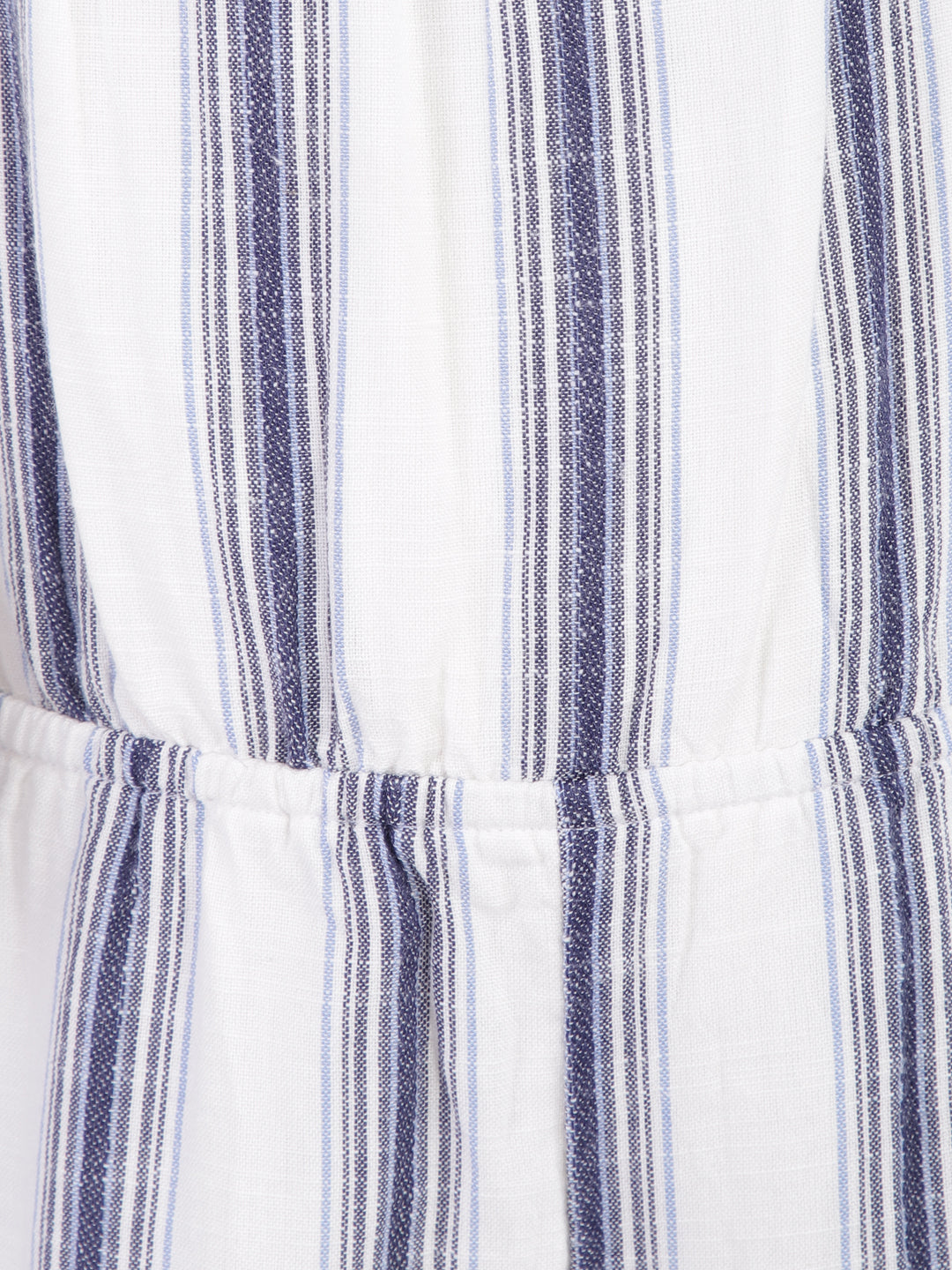 A wide striped comfortable jumpsuit is a perfect piece for daytime adventures, it s crafted from light cotton with strappy sleeves, elasticated waist and a stylish wide cut through the leg. Lined with 100% cotton.