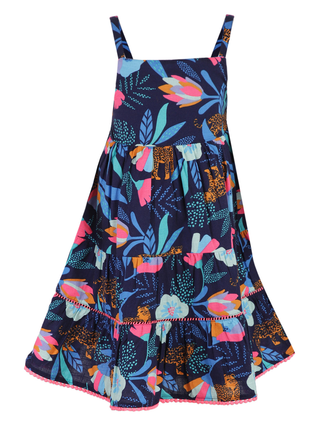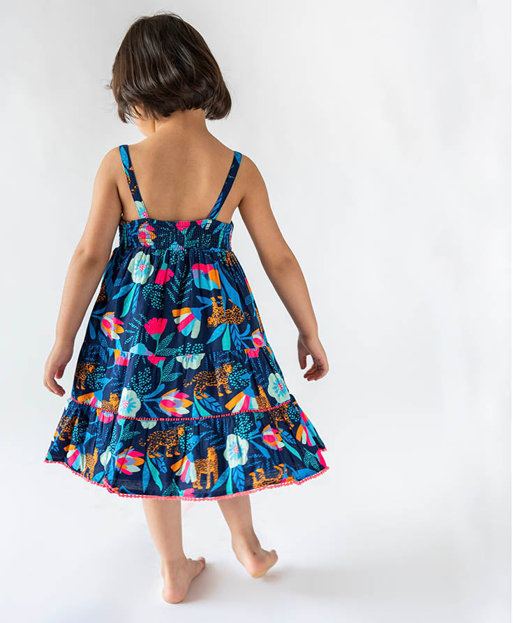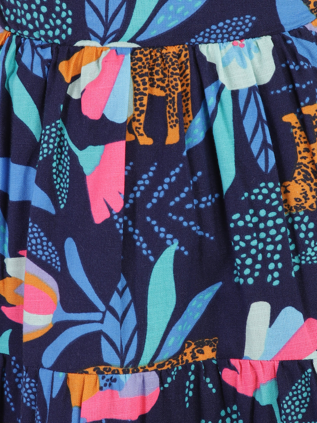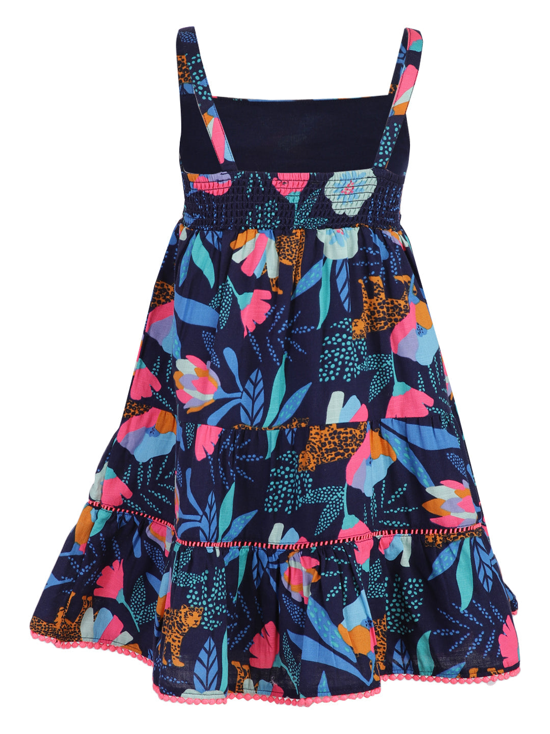 A vibrant casual dress with a tropical print, fully lined with cotton. A smart comfortable outfit for a casual get together. This dress is a slip on dress made in 100% cotton and is soft and easy to wear.