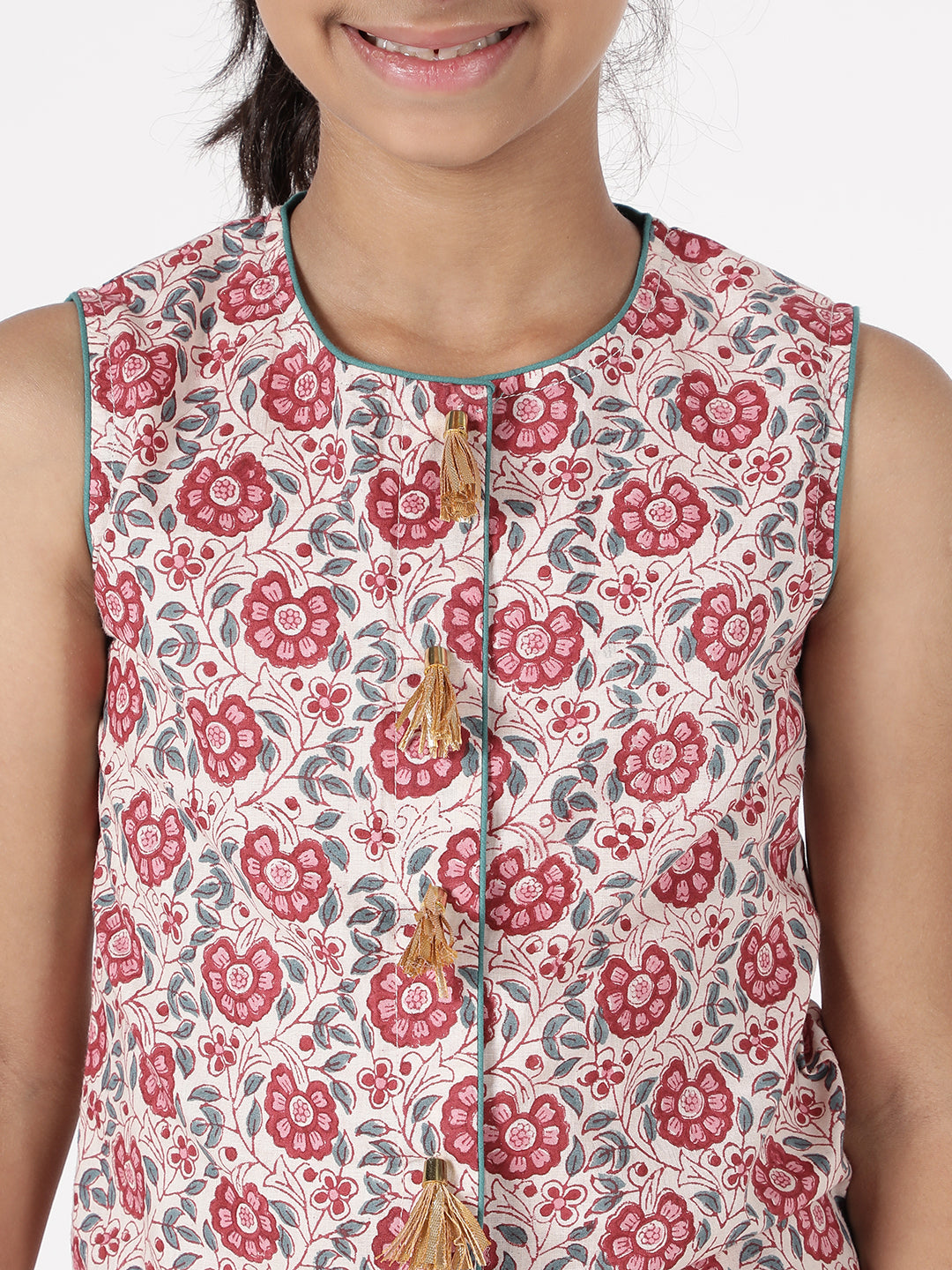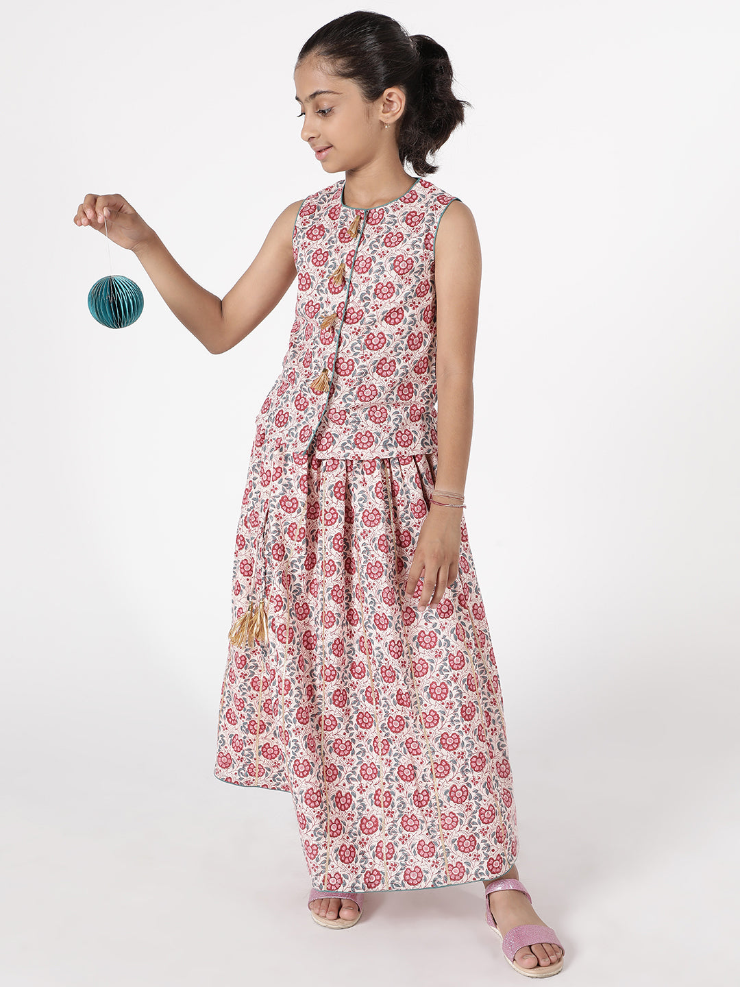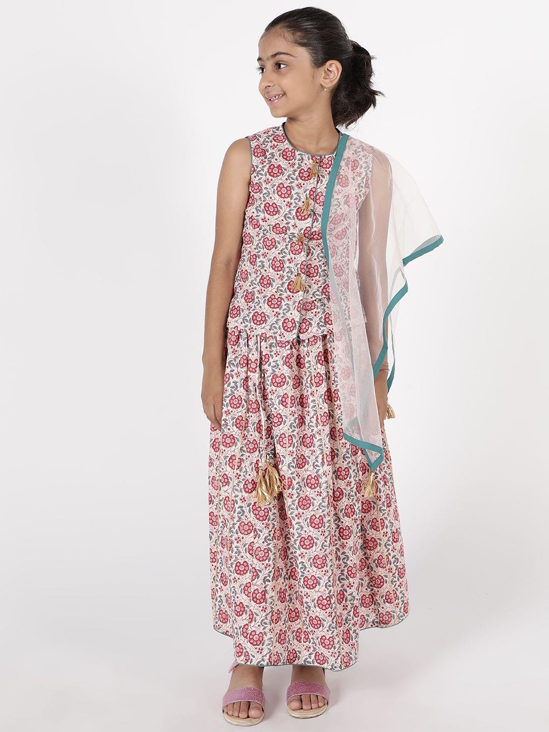 Simply adorable, this lehnga ensemble ensures a smile on your face. Made of 100% hand block printed comfortable cotton print is an ode to the artisans of rajasthan, in our effort to collaborate and promote local crafts of India. This ensemble will make your little angel stand out on any occasion. Uses soft cotton, has a YKK zipper at the back.
