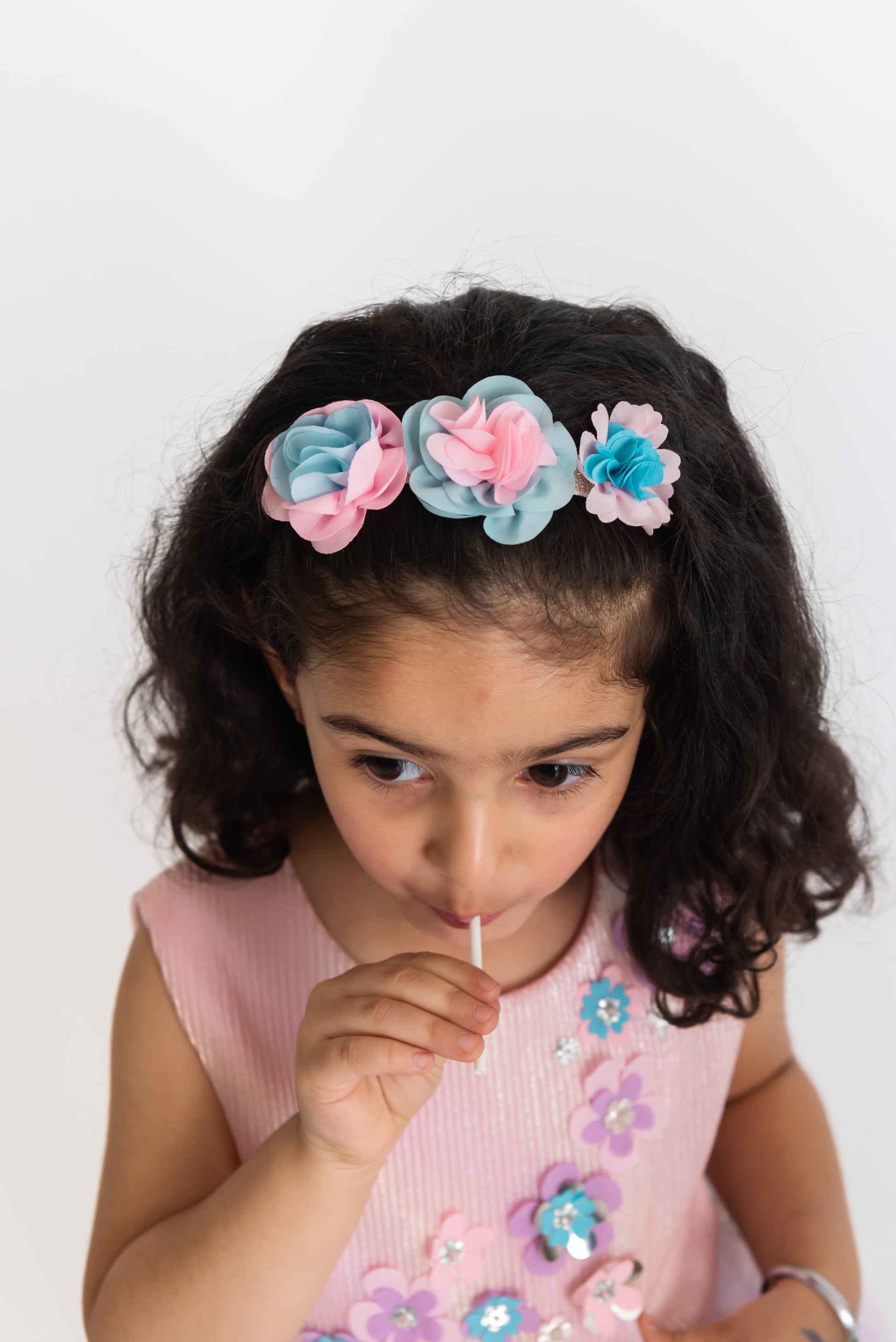 A perfect coordinate for the Whispering Lavender Dress, this headband has beautifully embroidered pink and blue flowers on an elasticated band.