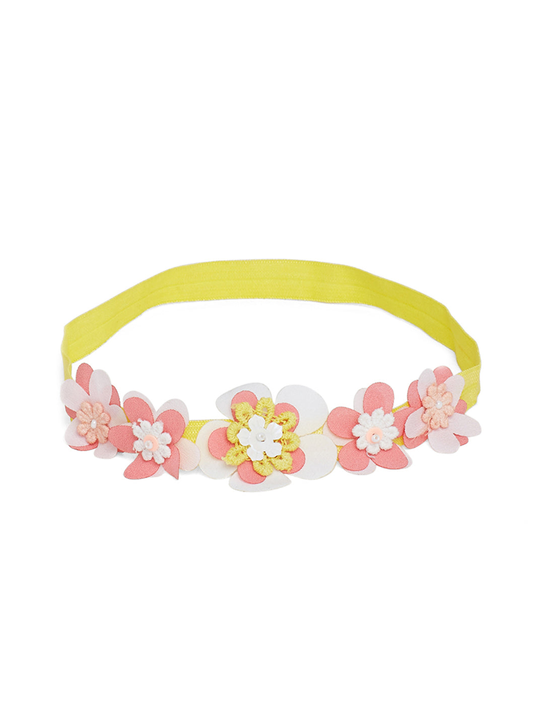 A perfect coordinate for with any Yellow dress, this headband has hand embroidered flowers with sequins on an elasticated band.